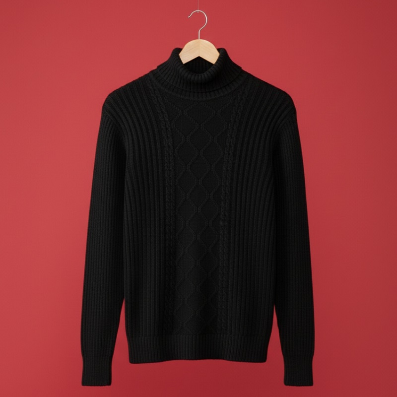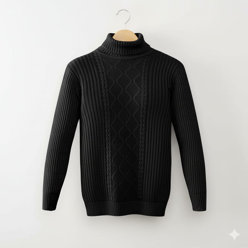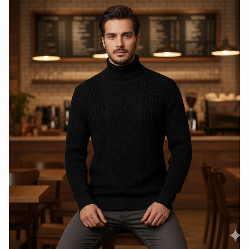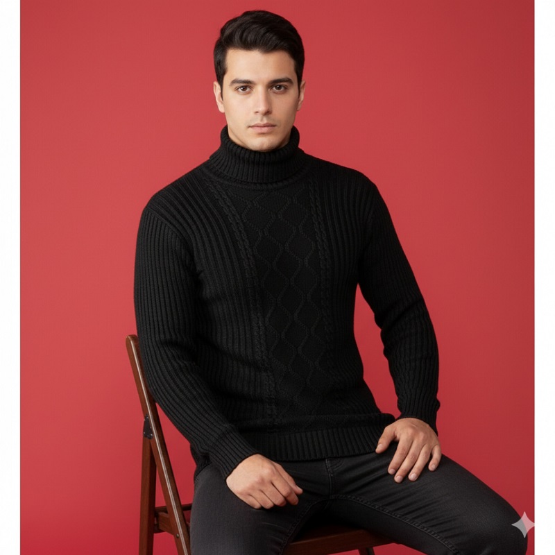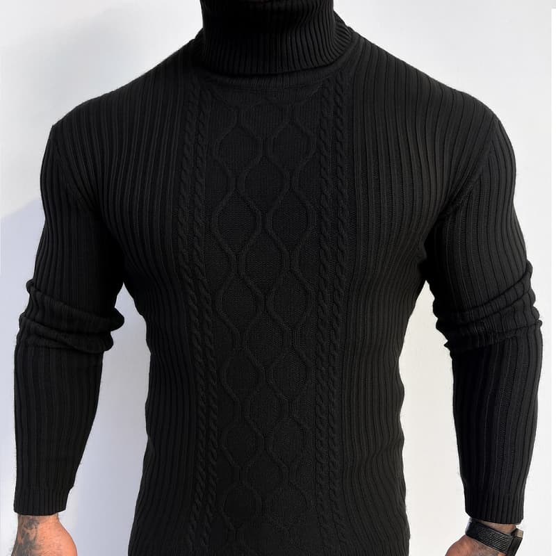 پلیوربافت مردانه مشکی یقه اسکی مدل Hakan