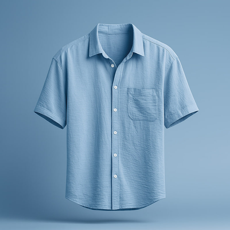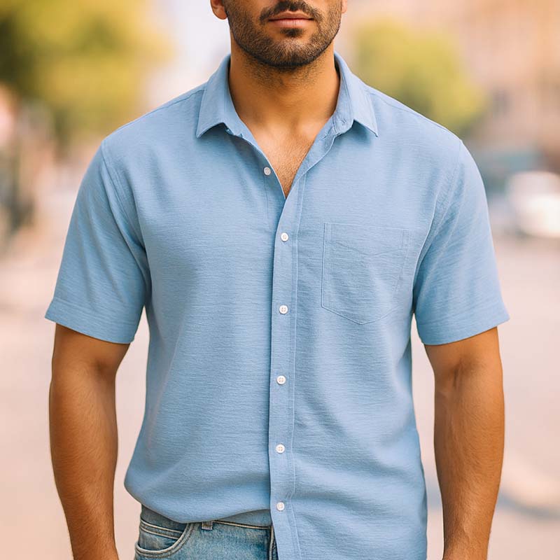 پیراهن آستین کوتاه آبی روشن مردانه مدل باکسی